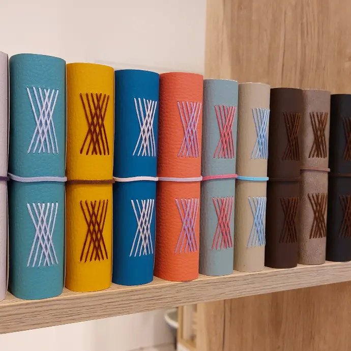 Functional Art: Hand-bound agendas and journals featuring Italian eco-leather and quirky, artistic papers.